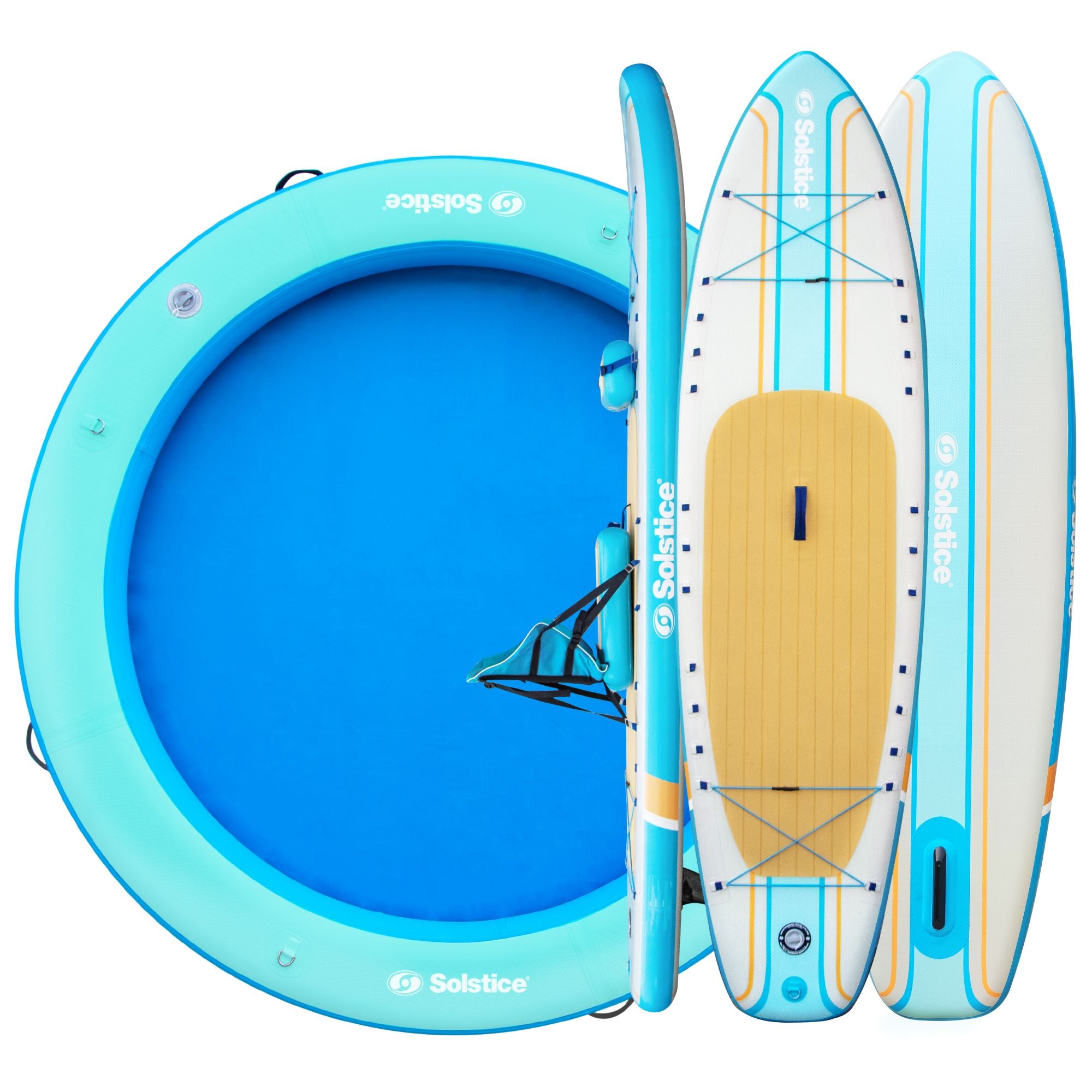Double your fun on the water! This versatile bundle combines our luxurious 8' circular dock with blue mesh center and the innovative SUP-YAK dual-mode board—perfect for active adventurers who love to explore and relax.