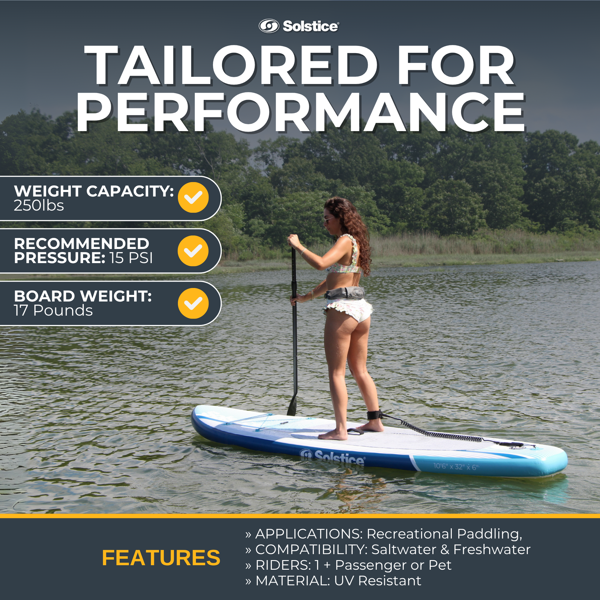 From docks and SUPs to kayaks and our award-winning Pup Plank—Solstice creates innovative water sports gear designed for more fun with less hassle. We're committed to making your aquatic adventures easier, safer, and more enjoyable for the whole family, including your four-legged friends.